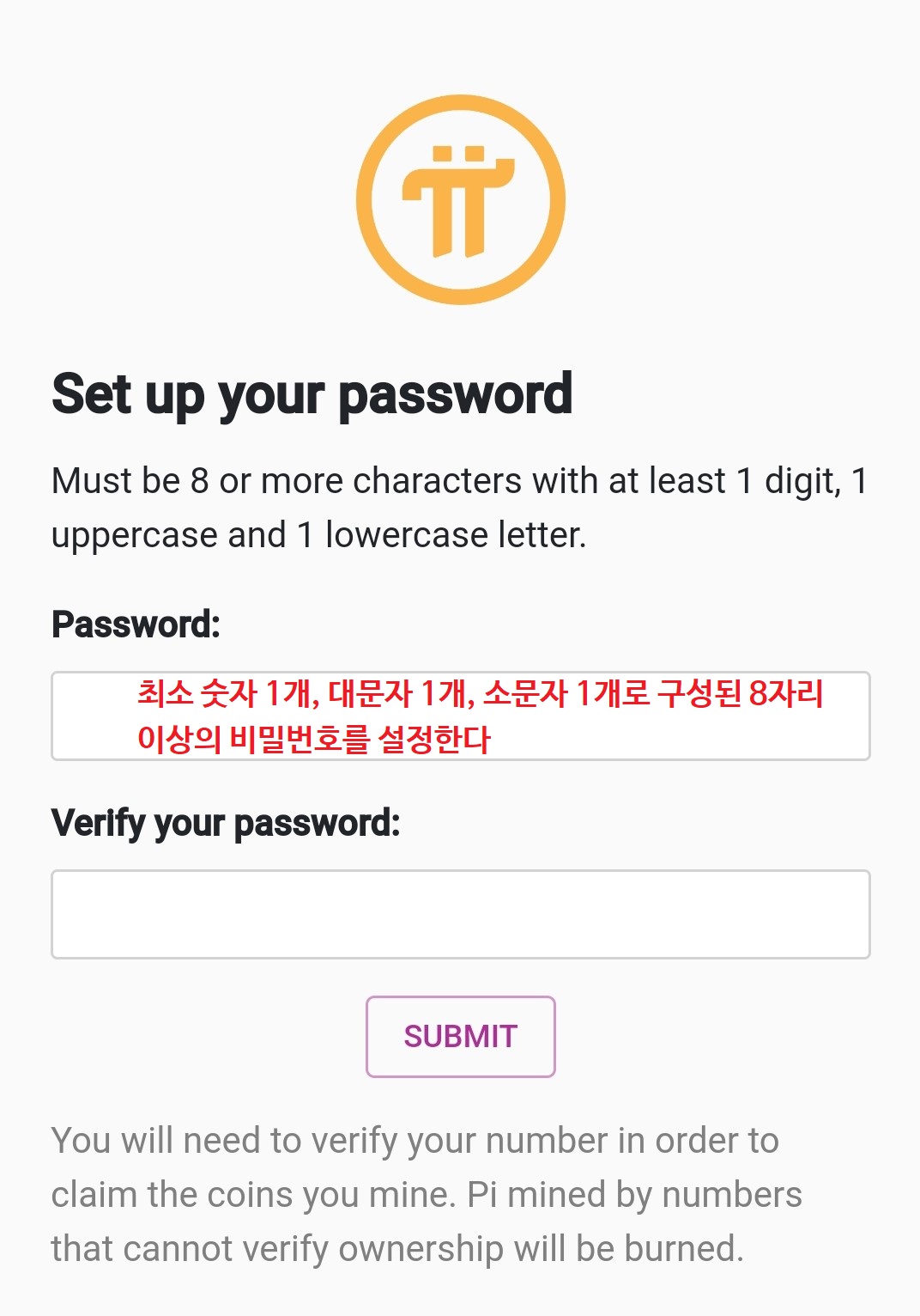 채굴한 파이코인을 추후 거래에 사용하기 위해서는 휴대폰 인증 절차를 거쳐야한다.