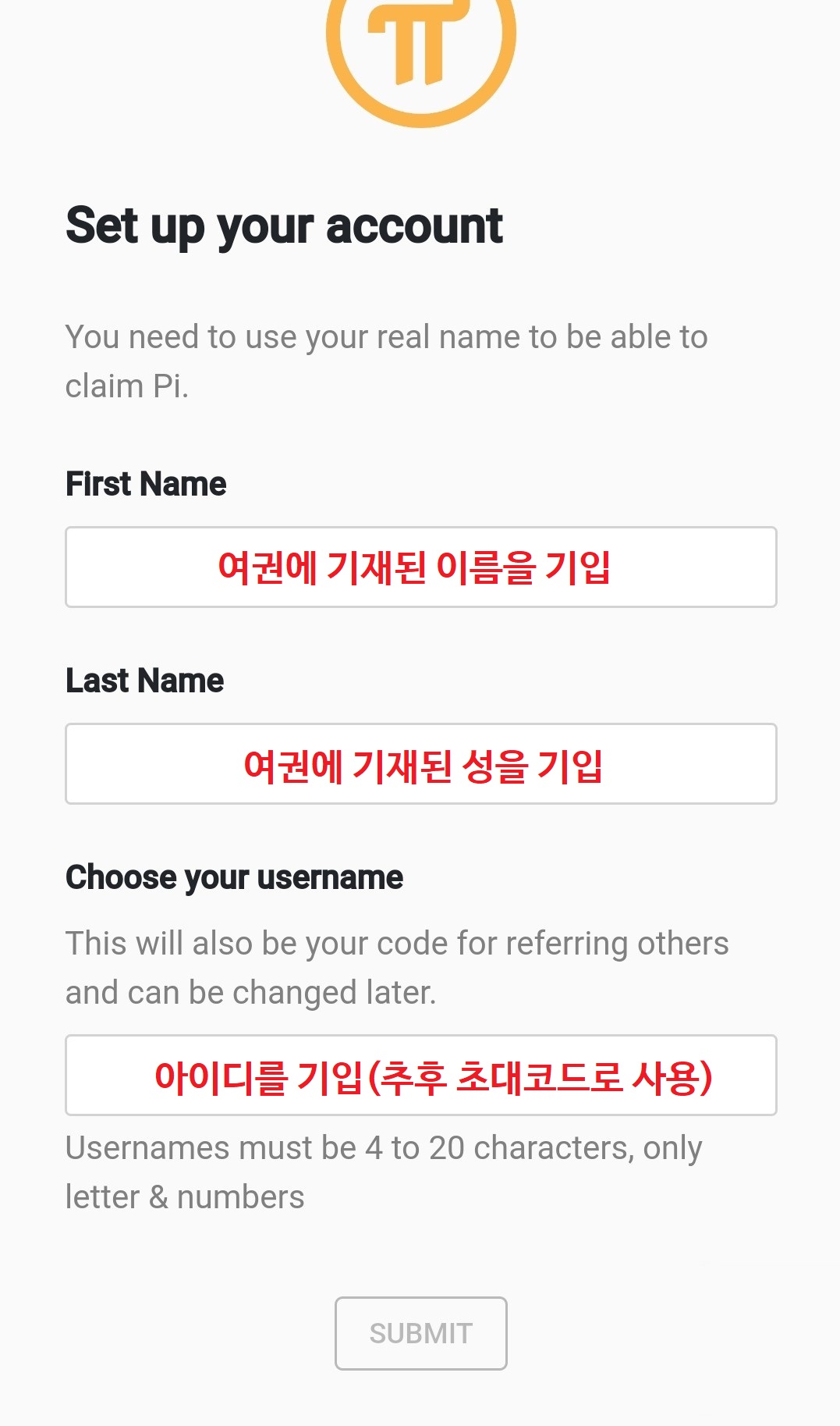주의해야 할 것은 가입자 성명을 꼭 실명으로 해야한다는 것이다. 반드시 여권에 기록된 영문명으로... 중복된 가입자를 방지하기 위해서라고 설명하고 있다. 추후 KYC 인증을 위해서는 반드시 영문 실명으로 해야한다!