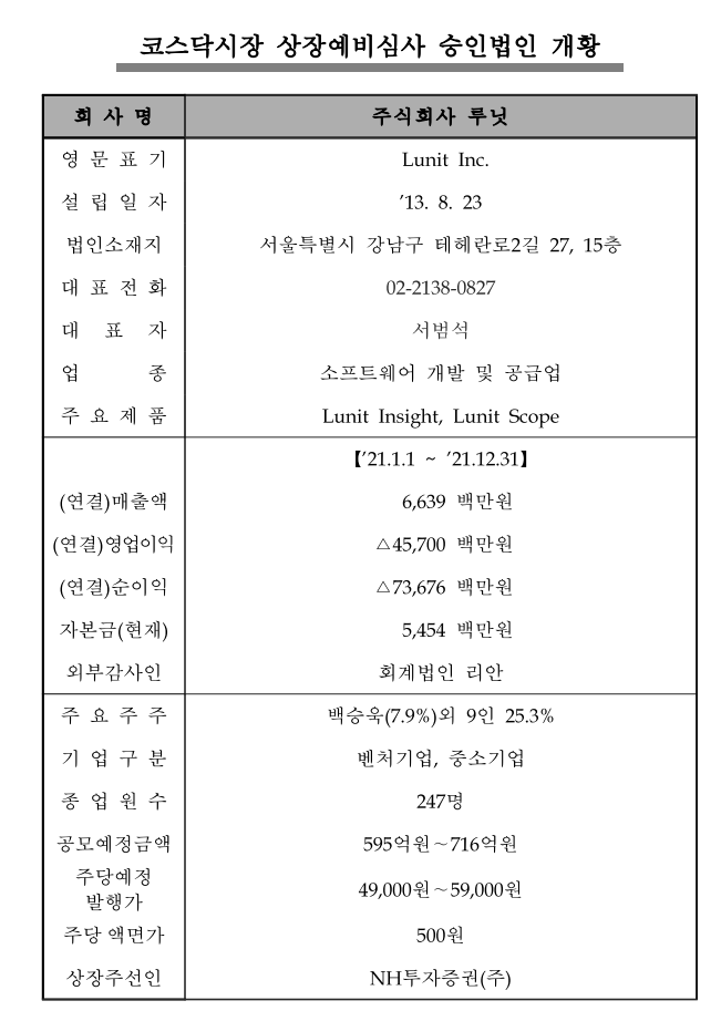 반면에 루닛은 4월 21일자로 한국 거래소로부터 상장예비심사청구를 승인 받았다.