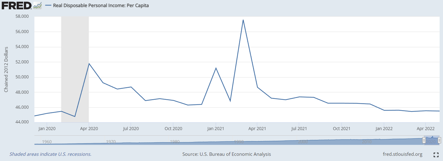 안그래도 미국의 1인당 가처분 소득이 계속해서 줄고 있는 마당에 기준금리 상승으로 인한 이자부담까지 가중된다면 개인 소비지출은 당연히 줄어들 수 밖에 없을 것이고, 기업 활동에 있어서도 높아지는 자본조달 비용은 부담으로 작용할 것이기 때문이다.