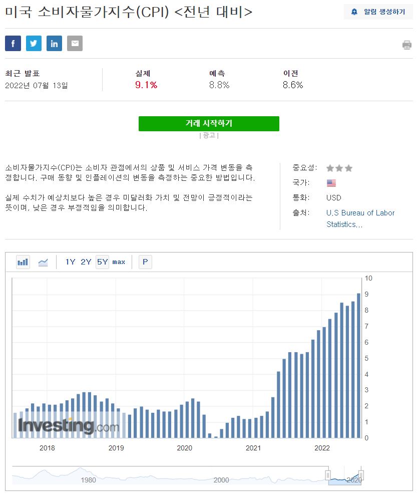 어제 미국의 6월 CPI가 발표 되었다.