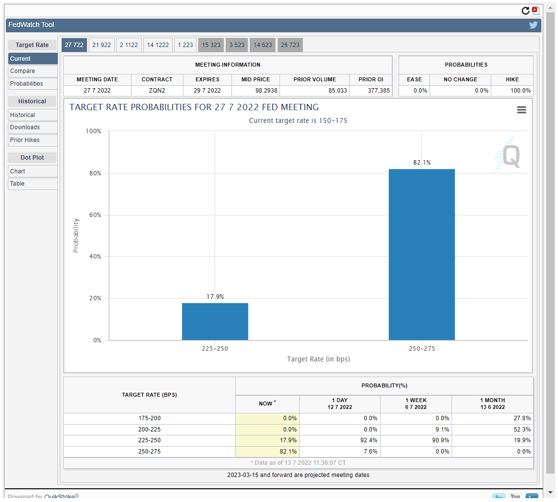 100bp 인상 확율이 불과 하루전의 7.8%에서 82.1%로 폭등했다.