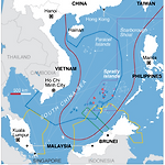 요즘 뉴스를 장식하고 있는 남중국해 문제가 정치적인 관점에서는 어제오늘일은 아니다. 예전에도 중국군이 남중국해를 순찰하는 것과 필리핀 말레이시아 어부들이 조업을 못해 힘겹게 살아가는 것에 대한 다큐를 보았을 때, 뭐 저런 깡패같은 국가가 있을까 했는데 가깝게는 우리나라에서도 최근 서해에서 꽃게잡이 어부들이 불법 중국 어선 때문에 조업을 못해 꽃게를 시장에서 찾기 어려운 지경에 이른 것을 보면 우리에게도 남의 집 불구경 할 일은 아닌 것 같다. 2016년 7월 12일 네덜란드 헤이그 상설중재재판소(PCA, Permanent Court of Arbitration)에서 남중국해에 관한 중국의 주장이 무효라고 판결을 내린 것에서 이목이 집중되었다. 이미지 출처 - 위키피디아(https://en.wikipedia..