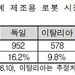 1. 세계시장 현황 및 전망 시장 현황 2007년 세계 로봇시장 규모는 전년대비 18.9% 성장한 81.26억불로 추산(국제로봇연맹[IFR], '08.10) 제조업용 로봇 시장 규모는 58.9억불로 추산, 최근 3년간 대체로 점진적 증가세를 유지 서비스용 로봇은 22.32억불로 추산, 가파른 성장세를 보이고 있음 -> 전문서비스용 로봇 시장은 연평균 59.3%의 고성장세 -> 개인서비스용 로봇 시장은 ‘06년 전년대비 △15.0%의 하락세를 보였으나, ’07년 전년대비 81.3%의 높은 성장세를 회복 제조용 로봇의 경우 세계시장 점유현황은 일본이 26.6%로 1위, 미국 21.0%로 2위를 차지하고 있으며 우리는 5.7%로 5위권 세계 로봇시장은 ‘13년 300억불 규모를 형성, 본격적인 시장성장 단계에..