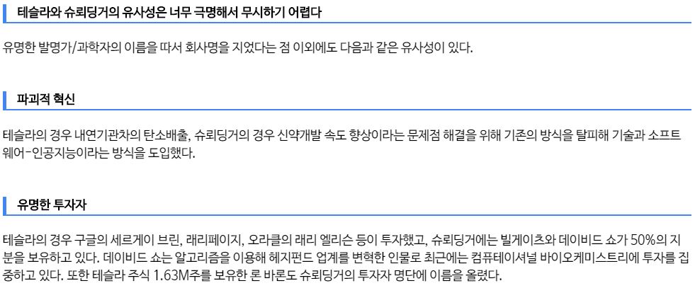 일부 블로거들은 슈뢰딩거와 테슬라를 비교하기도 하는데, 테슬라의 팬이자 주주인 나로서는 테슬라와 비교를 하는 글들을 보면서 좀 더 자세히 살펴보기로 했다.