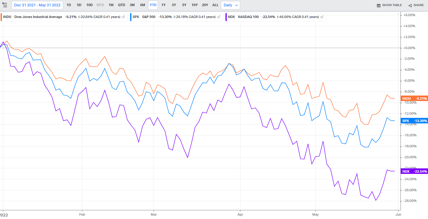 미국의 주요 지수는 4-5월 내리 하락하더니 5월 막바지에 유의미한 반등을 해주었다.